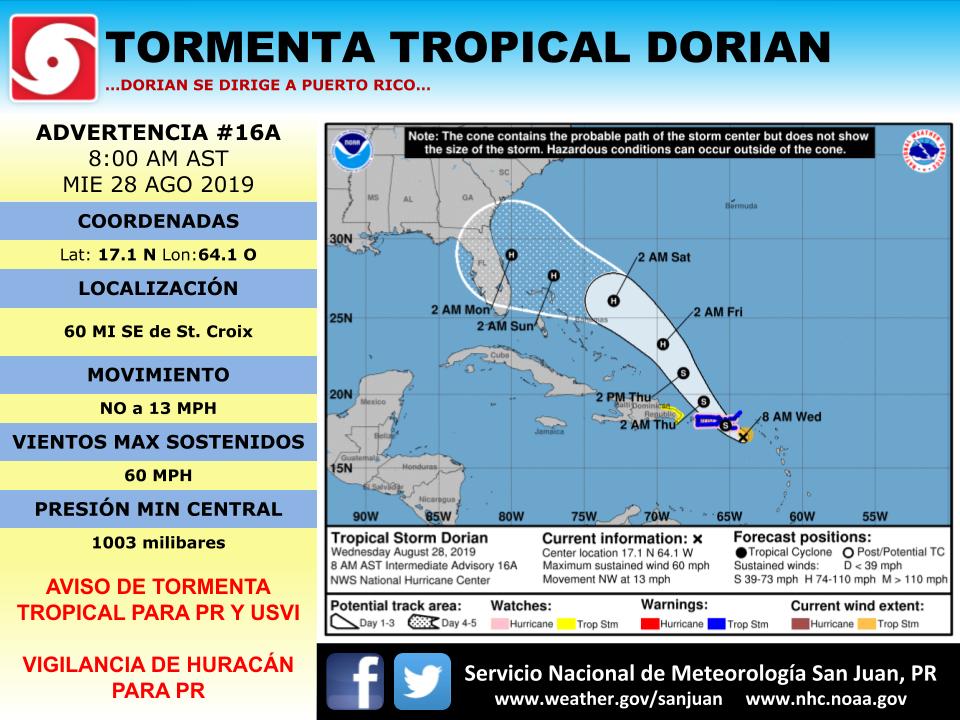 Nws San Juan On Twitter 8 00 Am Ast Advisory Advertencia 16a Tropical Storm Tormenta Tropical Dorian
