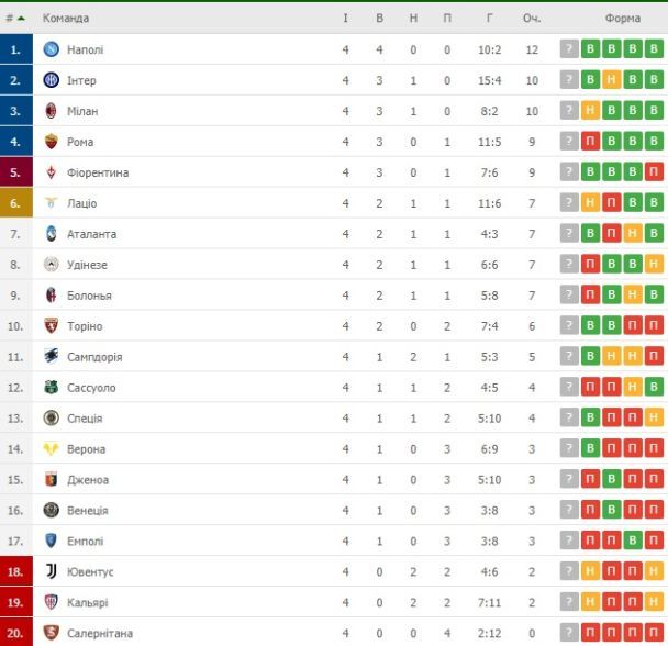 Seriya A Chempionat Italii Po Futbolu Raspisanie I Rezultaty Matchej 4 Tura 17 18 19 20 Sentyabrya 2021 Goda Sport Tsn Ua